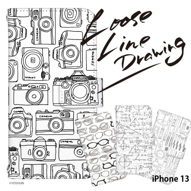 iPhone 13 ケース 手帳型 iPhone13 アイフォン13 カバー デザイン かわいい 手書き 手書き風 ゆるい メガネ アボカド 文房具 工具