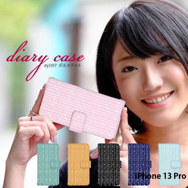 iPhone 13 Pro ケース 手帳型 iPhone13 Pro アイフォン13 プロ カバー デザイン ポルカドット ドット柄 ガーリー ゆるかわ ピンク