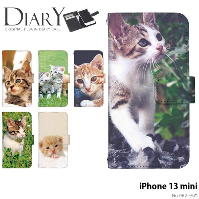 iPhone 13 mini ケース 手帳型 iPhone13 mini iPhone13mini アイフォン13 ミニ カバー デザイン 猫 猫 子猫