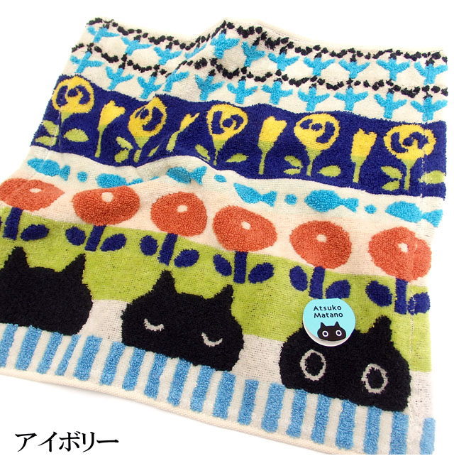 ウォッシュタオル ハンドタオル MEME更紗 黒猫 マタノアツコ またのあつこ 綿100% 34×35cm 日本製 今治 手拭 タオル 手ぬぐい