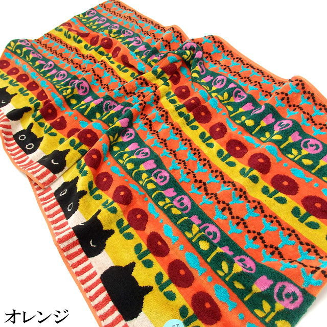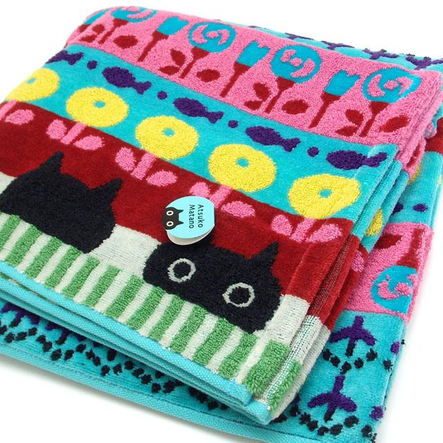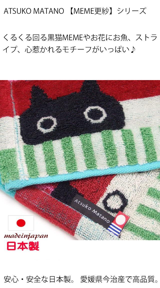 バスタオル MEME 更紗 黒猫 マタノアツコ またのあつこ 綿100% 猫グッズ 日本製 今治 手拭 タオル 手ぬぐい 猫柄 猫雑貨