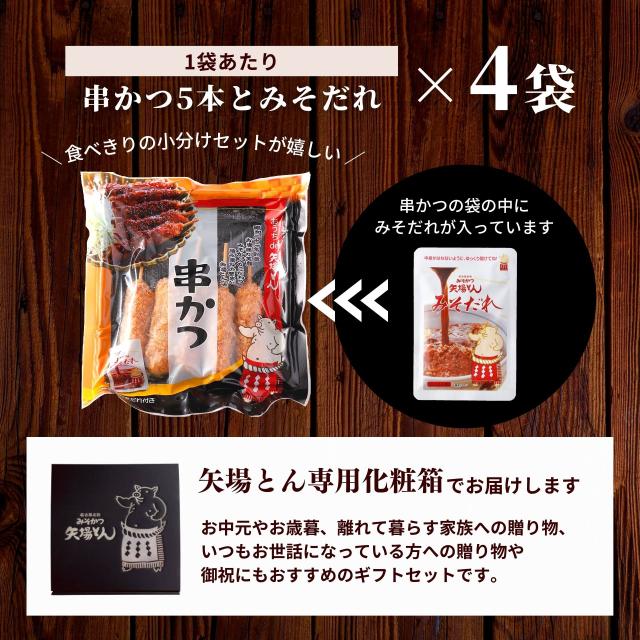 お歳暮 名古屋名物 矢場とん みそ串かつ 20本 セット 体育祭 ギフト 小分け タレ付き 国産豚 豚ロース 串カツ みそかつ 味噌 串かつ 冷凍 みそだれ とんかつ 電子レンジ 詰合せ 送料無料 冷凍 贈り物 プレゼント 誕生日 歳暮 御歳暮