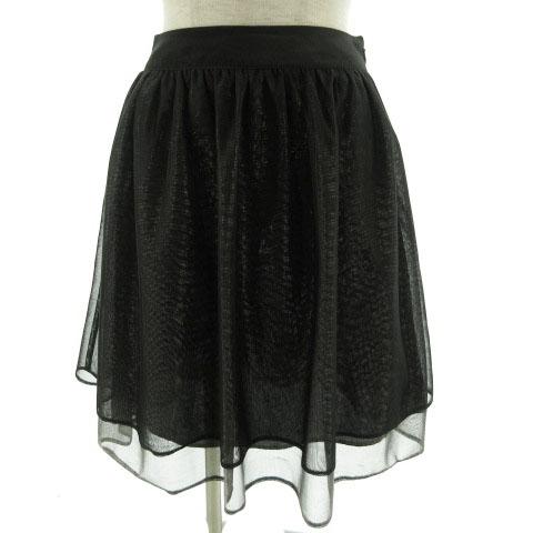 【中古】オットー OTTO スカート フレア ひざ丈 シャイニー 光沢 シンプル ブラック 黒 7 レディース