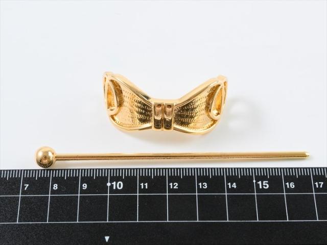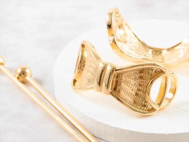 マジェステ 台座付き 変退色防止加工済 金属アレルギー対応 リボン ゴールド 土台内径17mm 2個 ヘアスティック アクセサリーパーツ 問屋