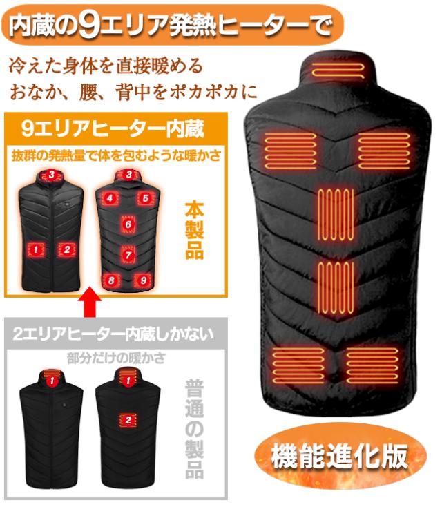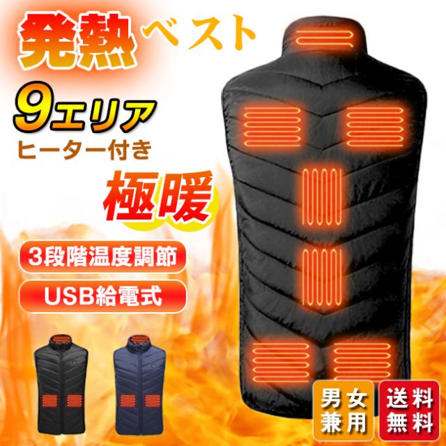 発熱ベスト 電熱ベスト 9エリア USB充電式 ヒータベスト チョッキ 宅急便発送 3段階温度調節 男女兼用 洗濯可 秋冬防寒 アウトドア ジャケット メンズ レディース ベストagesugi_sfa