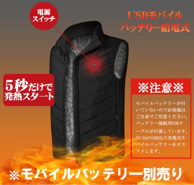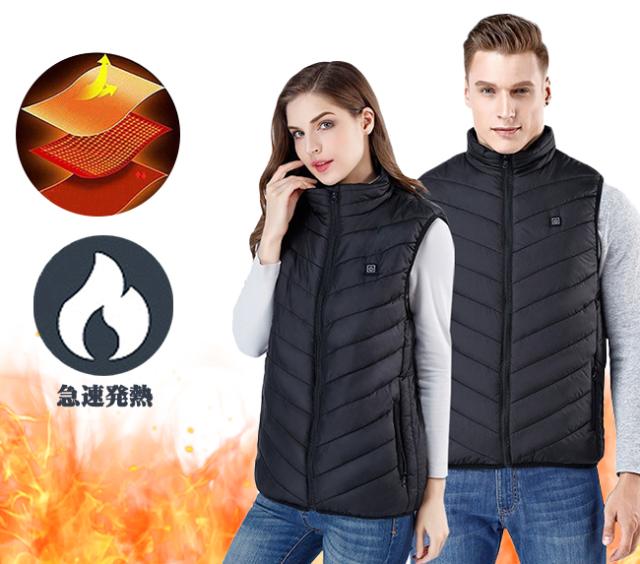 電熱ベスト 9エリア USB充電式 宅急便発送 3段階温度調節 男女兼用 洗濯可 秋冬防寒 アウトドア ジャケット メンズ レディース ベスト