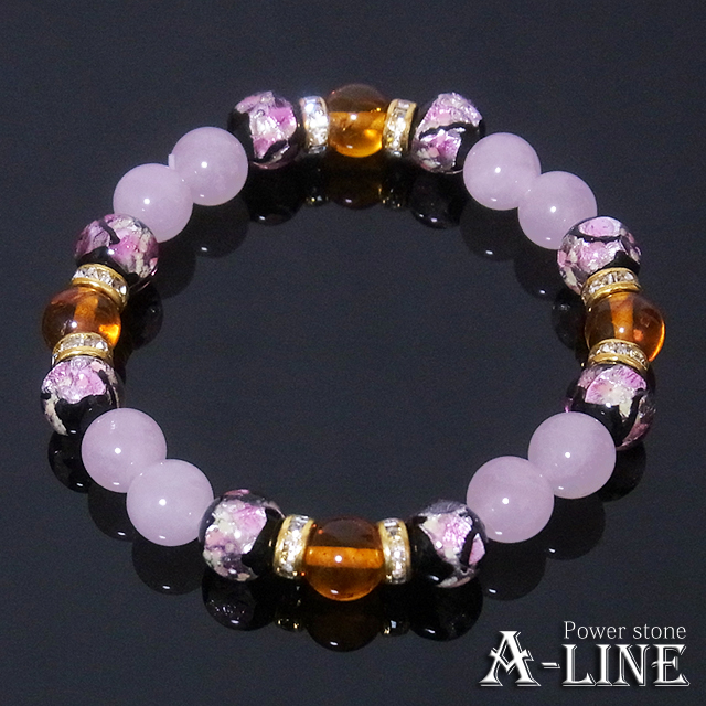 パワーストーン ブレスレット 秋冬の金運UPに 琥珀(アンバー)8mm&ほたる玉&ローズクォーツ8mm PW-3456