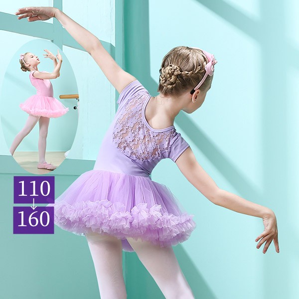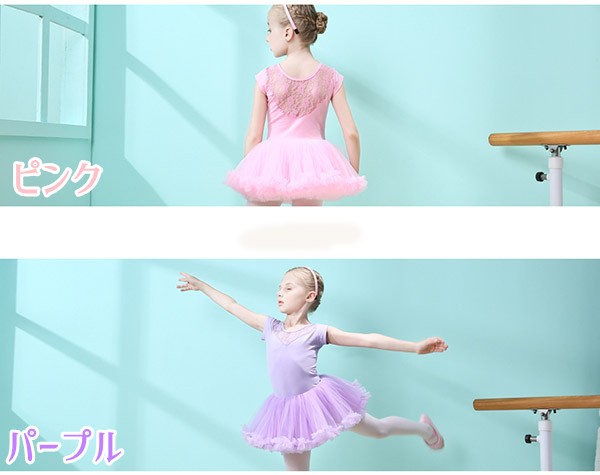 バレエレオタード レオタード キッズダンス キッズレオタード 子供ダンス衣装 バレエダンス 2点セット 半袖 レース 透け感 チュチュ 新体操 股下スナップ 女の子 可愛い ダンス服 練習着 子ども用 パープル ピンク 110 120 130 140 150 160 da951s1s1x0