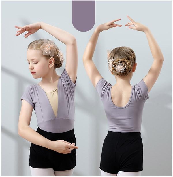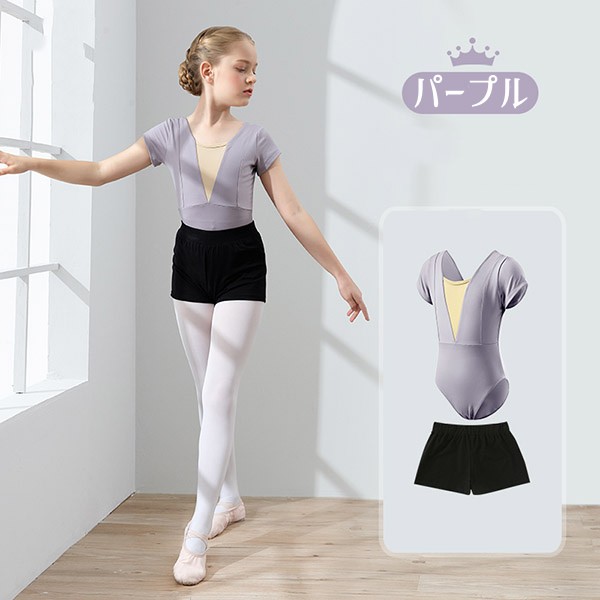 バレエレオタード レオタード キッズダンス キッズレオタード 子供ダンス衣装 バレエダンス 2点セット 半袖 透け感 ハーフパンツ 新体操 股下スナップ 女の子 可愛い ダンス服 練習着 子ども用 ピンク パープル イエロー グリーン オレンジ 110 120 130 140 150 160 da944s1s1x0