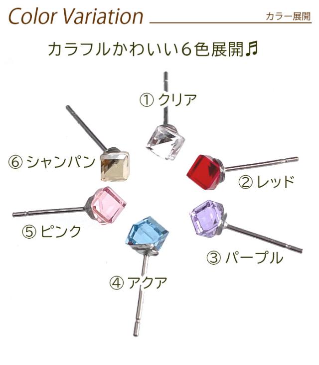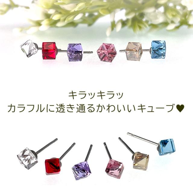 | 【当店オリジナル】カラフル キューブ ピアス セカンドピアス 金属アレルギー対応 医療用 ステンレス |