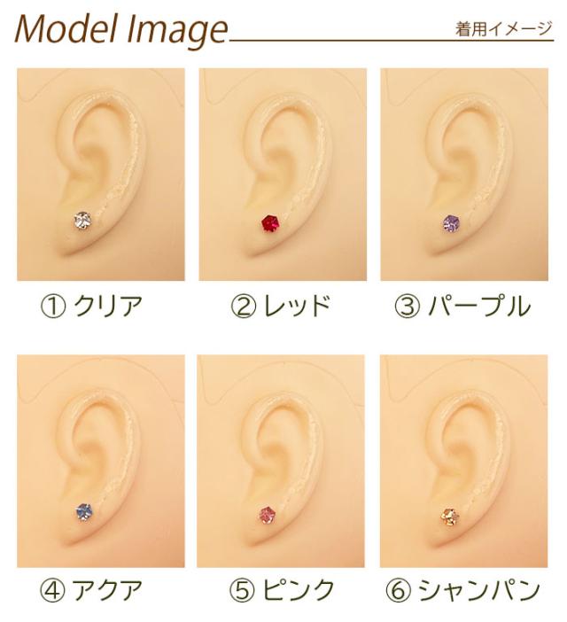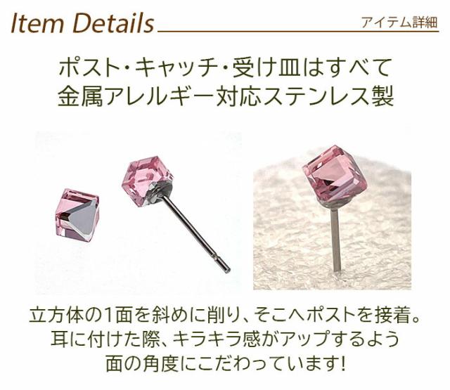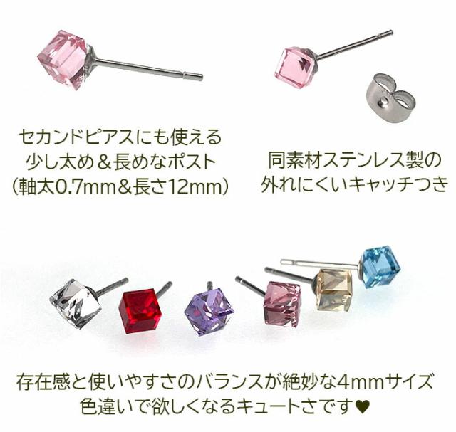 セカンドピアス つけっぱなし カラフル キューブ 立方体 4mm 金属アレルギー ステンレス 軸太 ロングポスト 片耳 1個ずつバラ売り