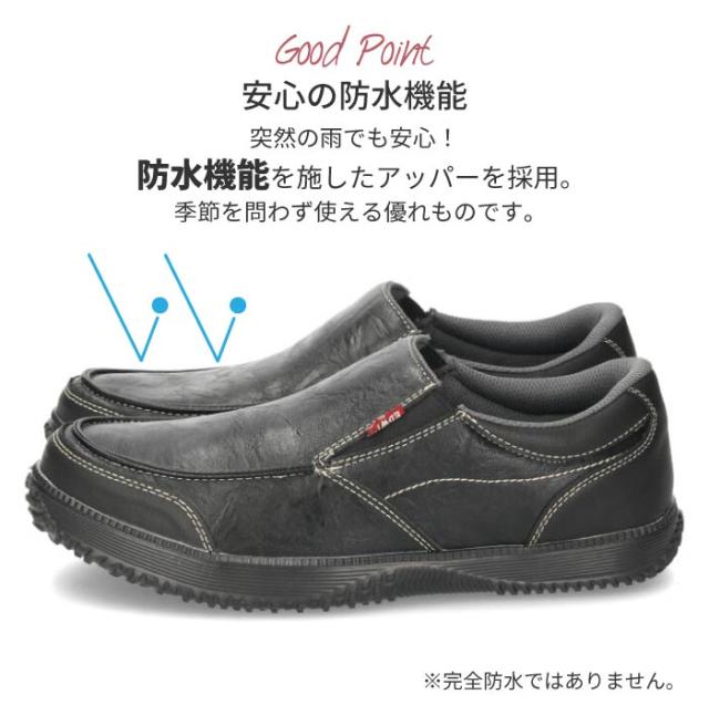 突然の雨でも安心の防水機能を備えたスリッポンシューズです。(※完全防水ではありません)