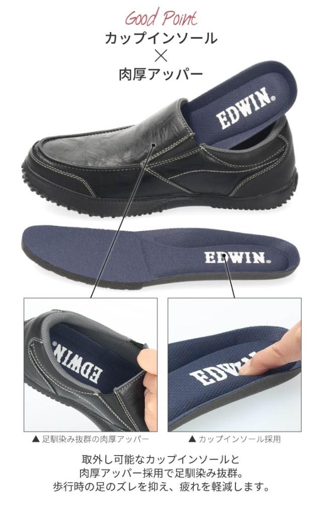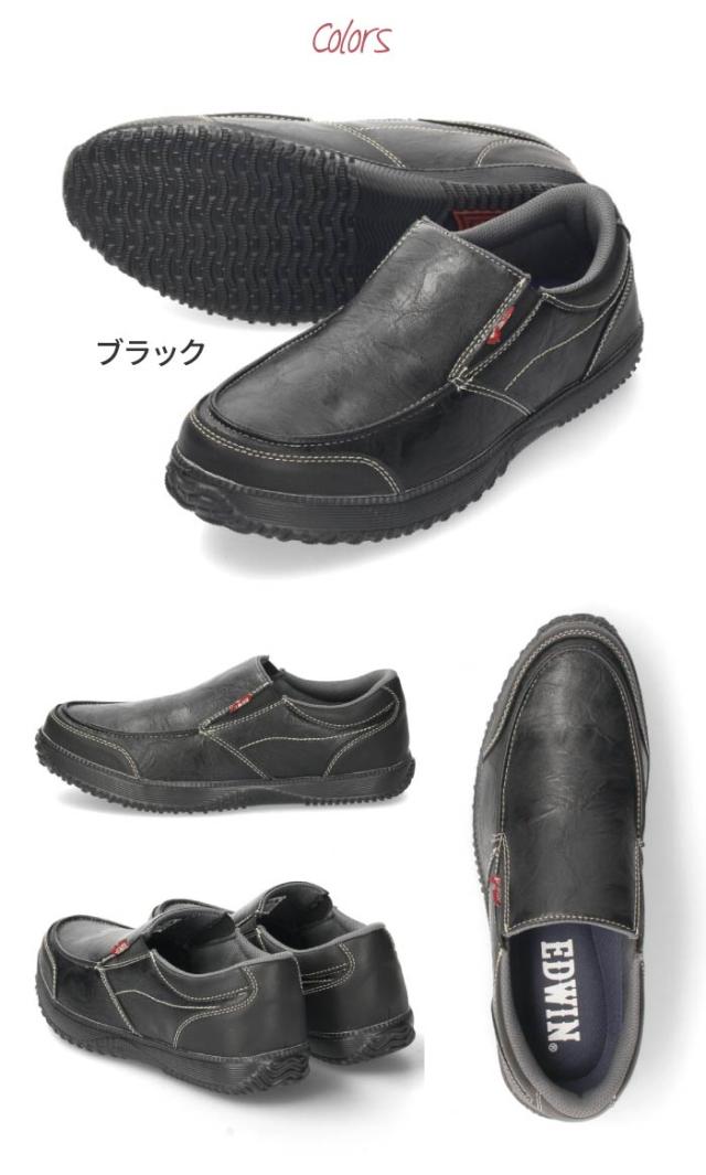 スニーカー 防水 メンズ スリッポン ドライビングシューズ エドウィン EDWIN 靴 ブラック ブラウン カジュアル おしゃれ EDM-1811 疲れにくい クッション