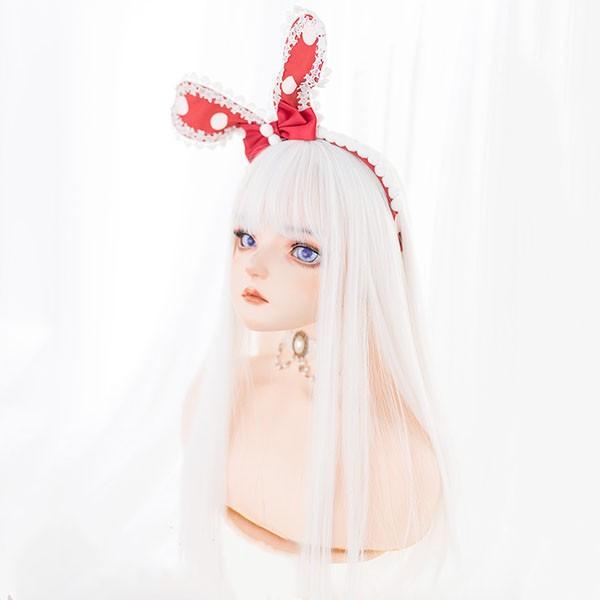 ウィッグ フルウィッグ ロング 白髪 ストレート ホワイト ロングウィッグ 長髪 前髪あり 原宿風 かつら ぱっつん前髪 コスプレ 可愛い コスチューム 仮装 大人用 普段使い 文化祭 イベント 学園祭