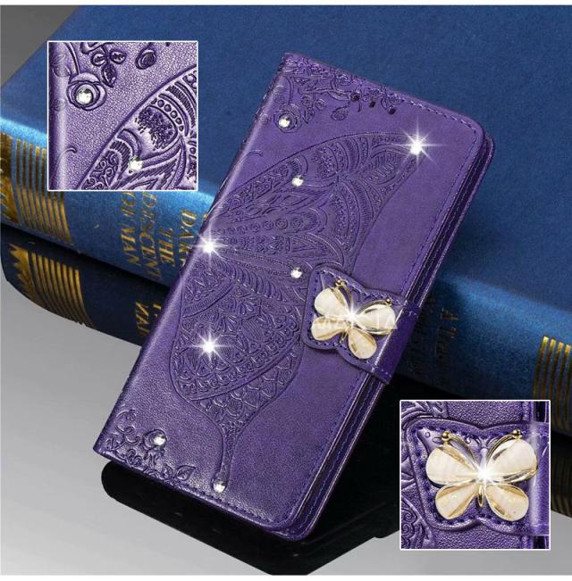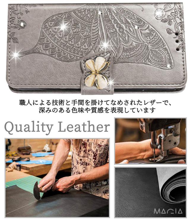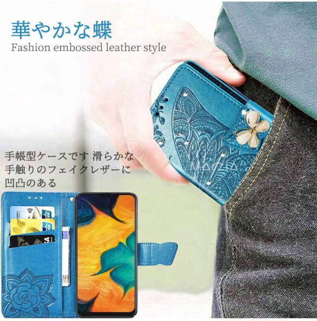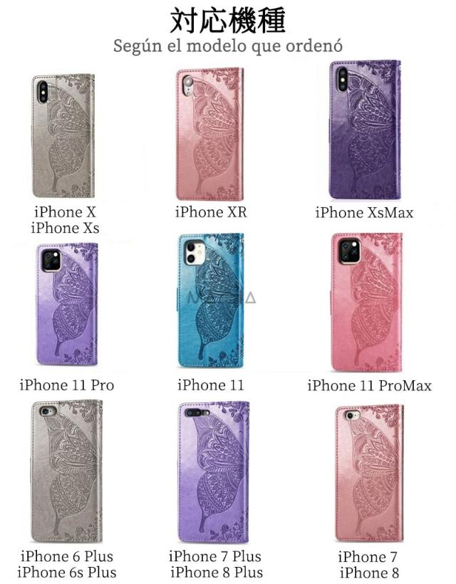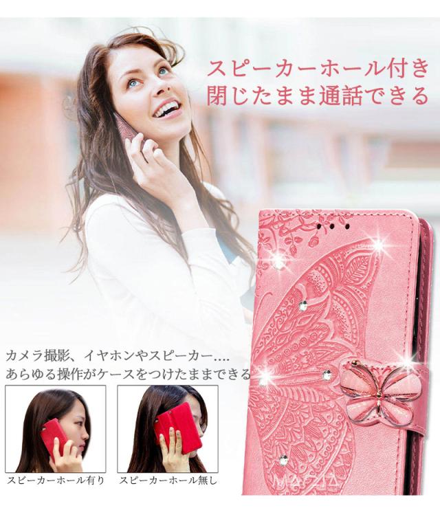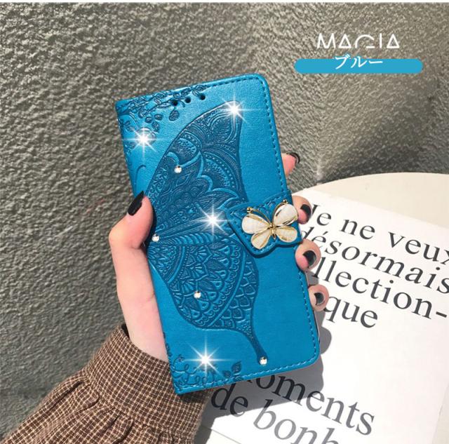 華やかな蝶レザー型押しされた手帳型スマホケースです。