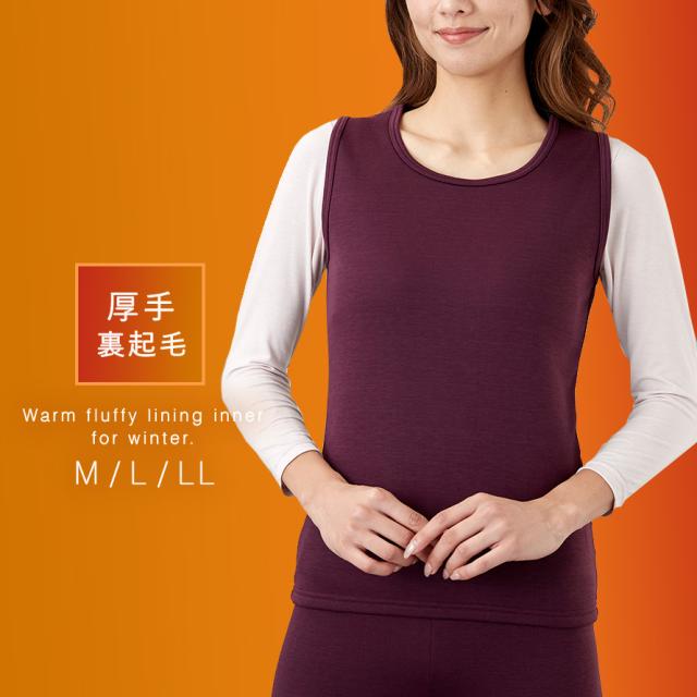 ベスト 袖なし 肌着 裏起毛 裏起毛ベスト アンダーベスト 厚手 無地 ブラック 黒 ワイン インナー レディース 冬 暖かい あったか 冷え症 対策 グッズ あったかインナー 秋冬 M L LL 大きいサイズ ゆったり あたたか裏起毛アンダーべスト