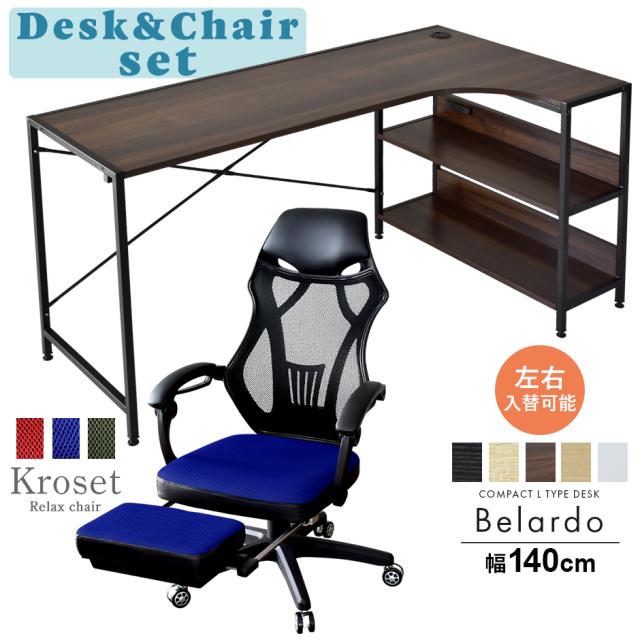 パソコンデスク PCデスク L字型 コーナー オフィスデスク オフィスチェア メッシュ リクライニングチェア ハイバック 肘付き 上下昇降 ベラルド クロセット
