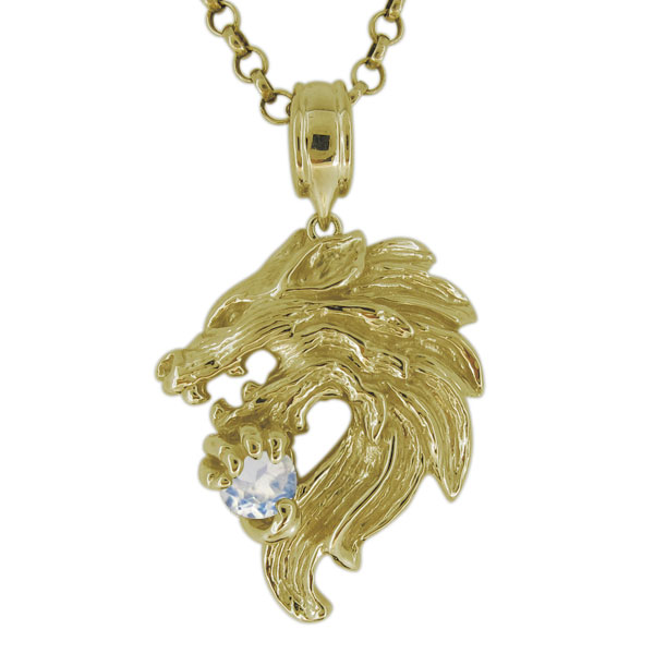 6月誕生石ロイヤルブルームーンストーンを使用した18金製の、狼(ウルフ)モチーフのメンズネックレス(ペンダント)です。