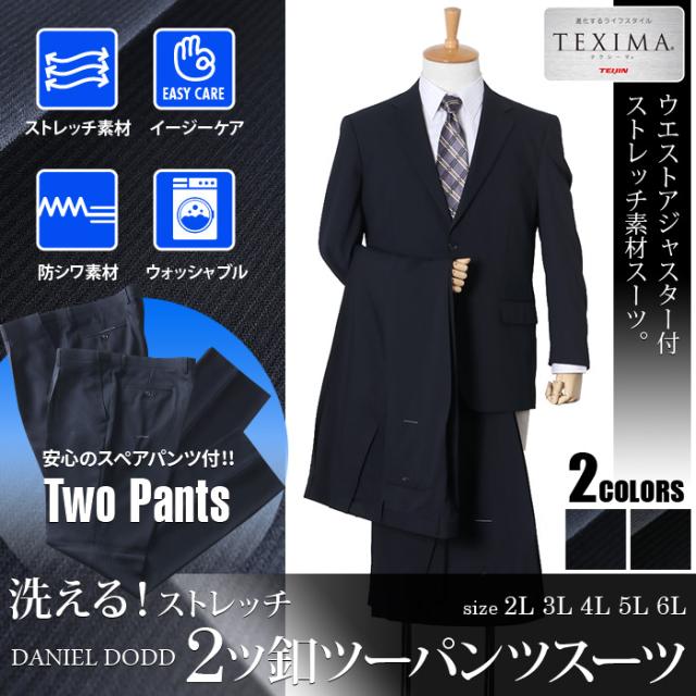 大きいサイズ メンズ DANIEL DODD 洗える ストレッチ 2ツ釦 ツーパンツ スーツ ビジネススーツ リクルートスーツ z122072