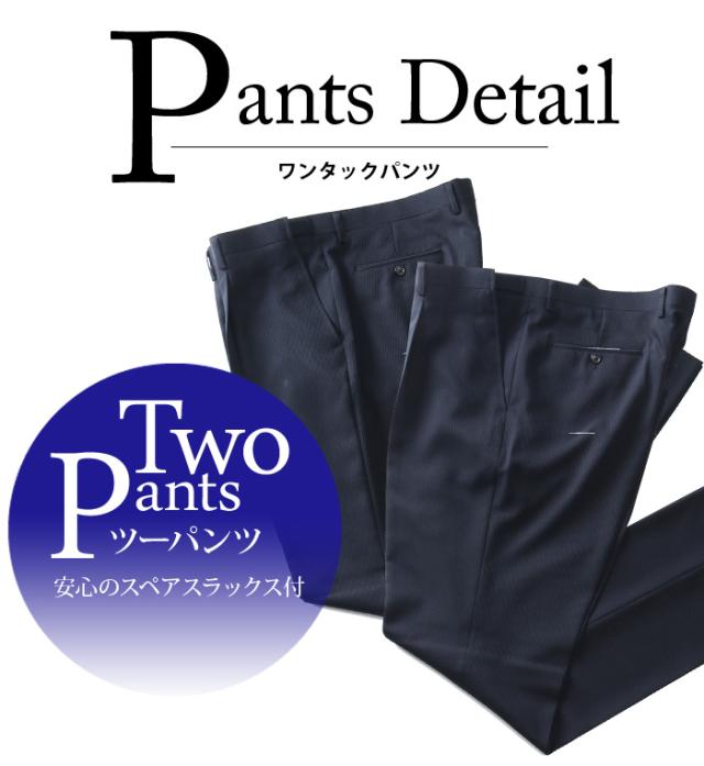 便利なスペアスラックスが付いた2パンツスーツです。