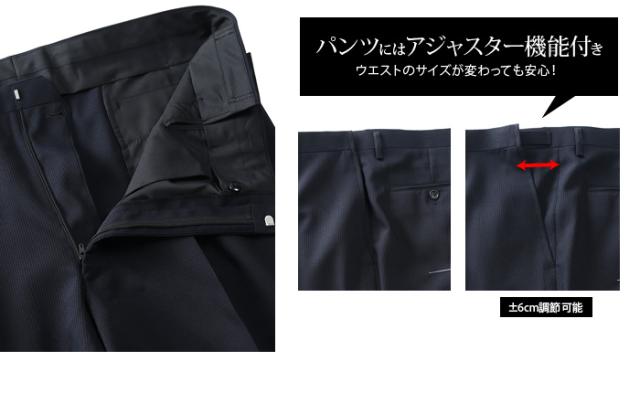 スラックスには±6cm調整可能なウエストアジャスター付き。