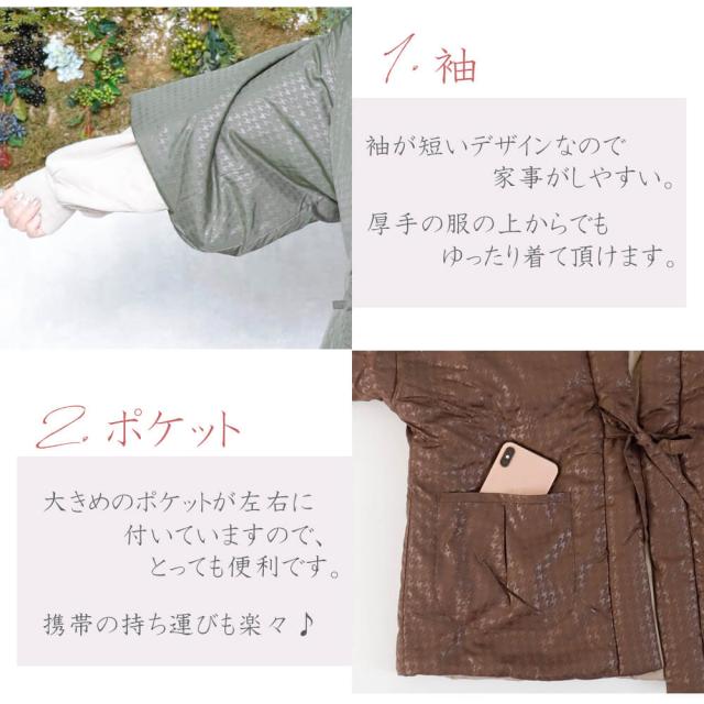 袢纏は昔から日本で愛用されてきた防寒着。ゆったりとした着心地の良さや、ダウンの様な保温性も兼ね備えており、厳しい冬の寒さから守ってくれます。