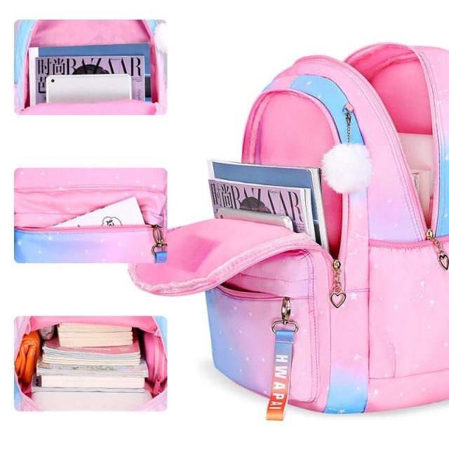 子供リュック グラデーション プリント リュックサック 女の子 小学生 バックパック 防水 お祝い 遠足 アウトドア 通学 可愛い セーフティグッズ 送料無料