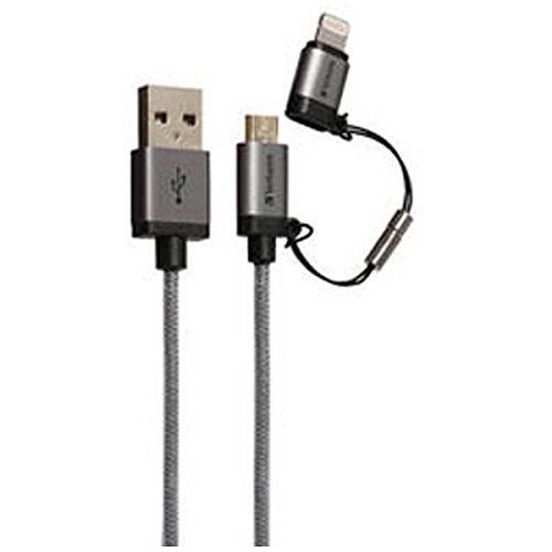 VERBATIM MFI認証・強靭・高耐久・ライトニングコネクタ付microUSBケーブル(64828B)