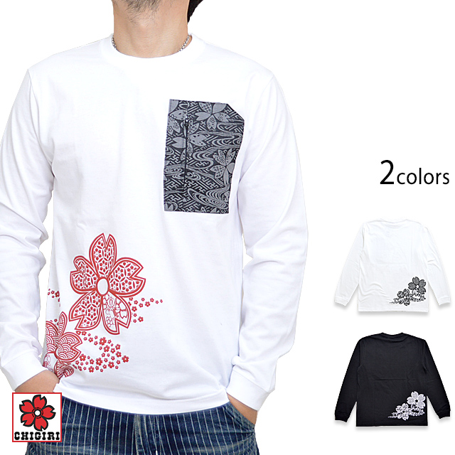 春夏秋冬胸ポケット付きロングTシャツ CHIGIRI CHL47-592 和柄 和風 ちぎり チギリ 長袖Tシャツ ロンT 桜