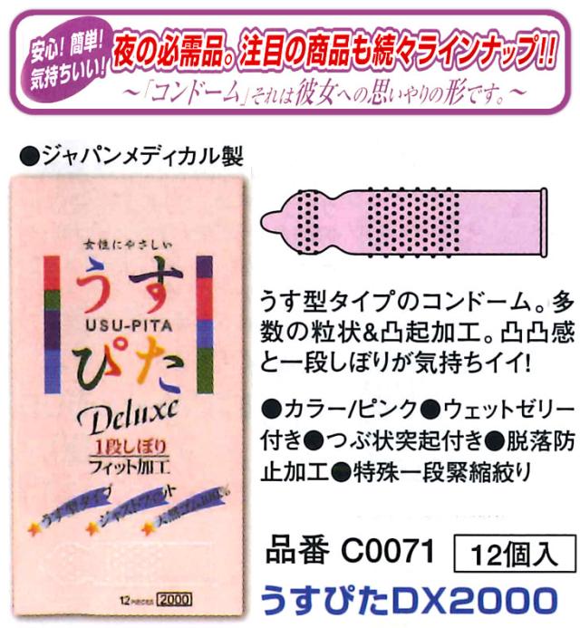 ◆【うす型タイプコンドーム】【男性向け避妊用コンドーム】ジャパンメディカル うすぴたD×2000(12個入り)(うすぴた2000)【C0071】 ※完全包装でお届け致します。