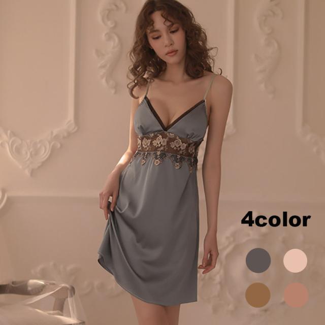 ●効果:パリの貴婦人を思わせる気品高いかわいいスリップワンピース。 胸元のVラインは鎖骨と胸元を美しく魅せます。