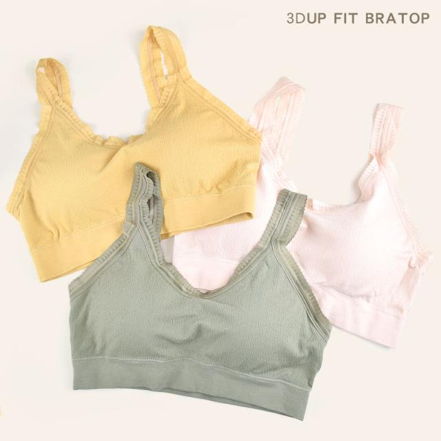 【ブラトップ ノンワイヤー レディース インナー ブラジャー フィット レース 伸縮性 ストレッチ メッシュ 通気性 お洒落 可愛い ブラレット カップ付き パット入り シンプル 大人 きれいめ 下着 肌着 3D 美胸 楽ちん ノーストレス ナイトブラ】