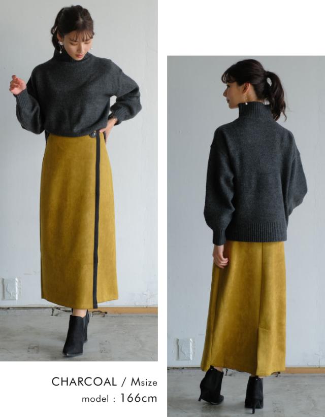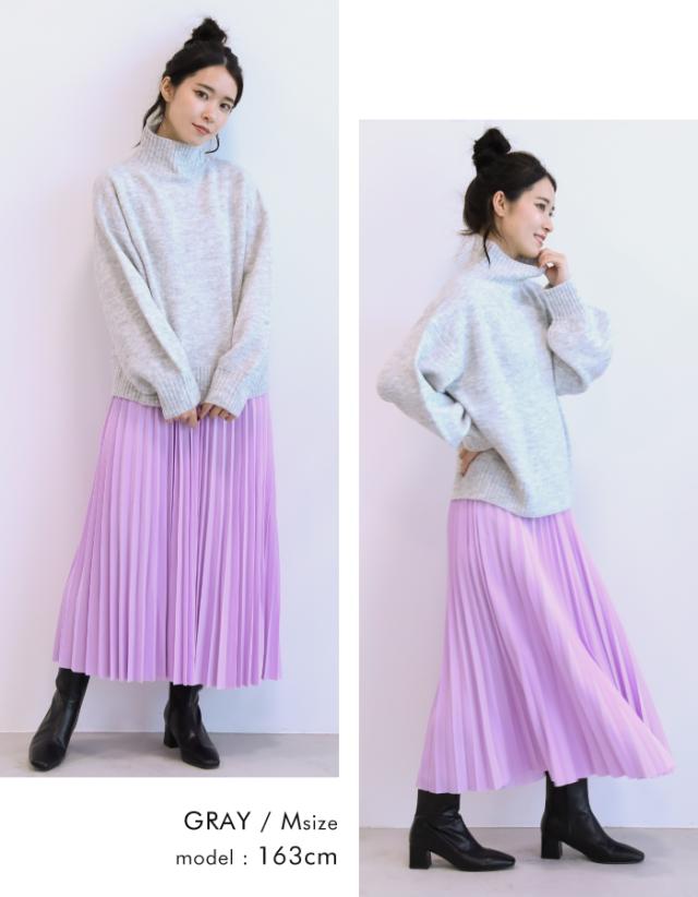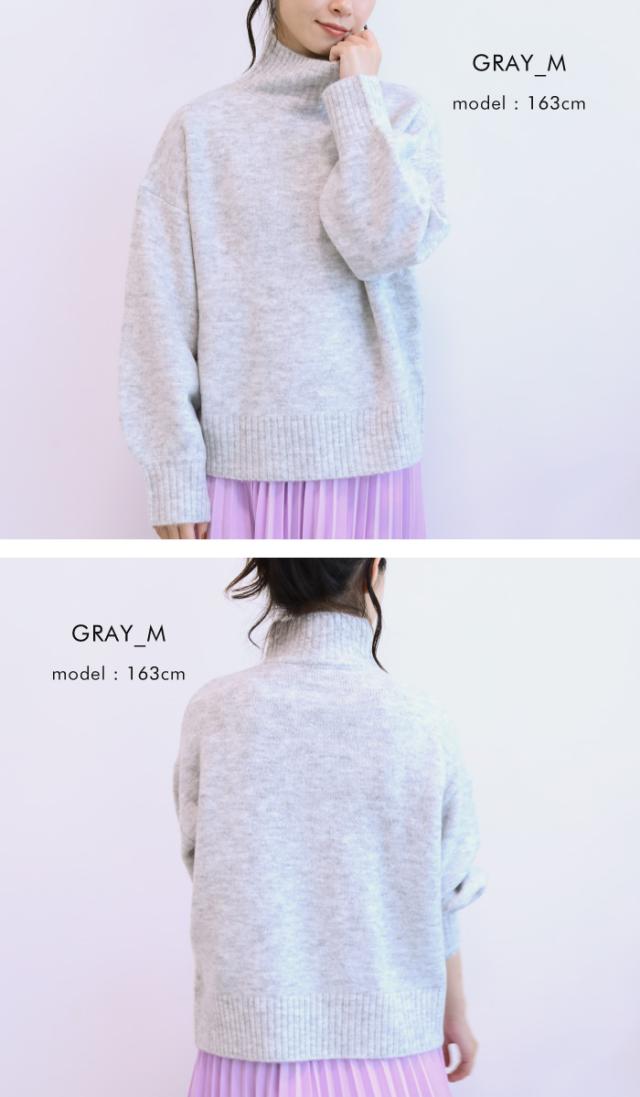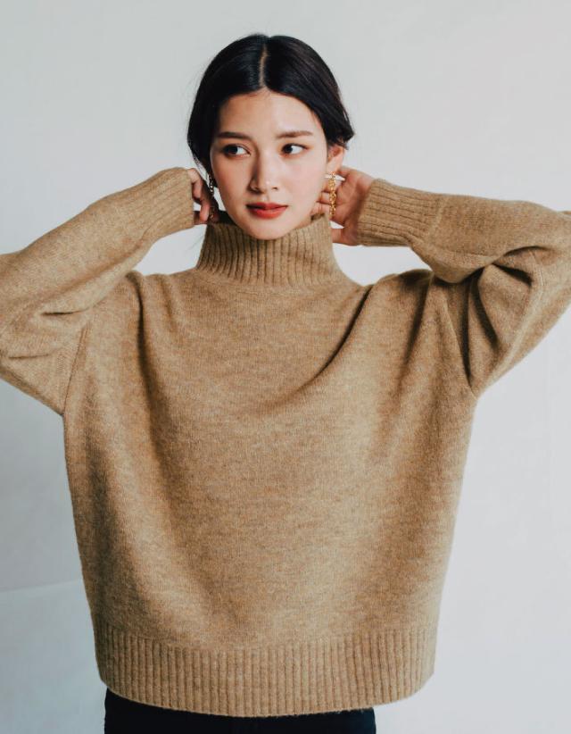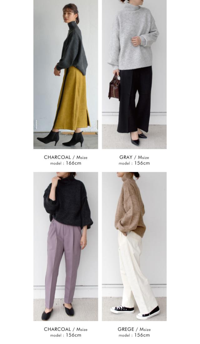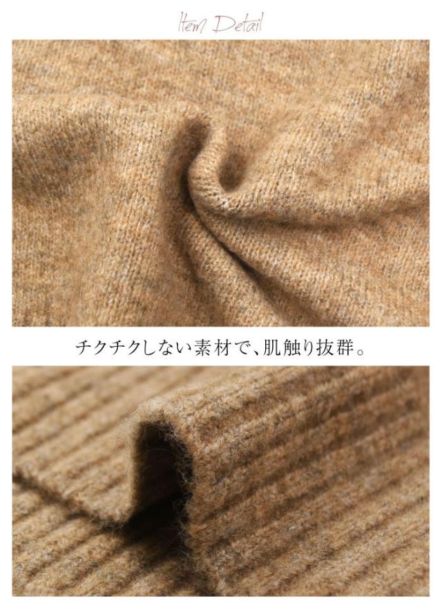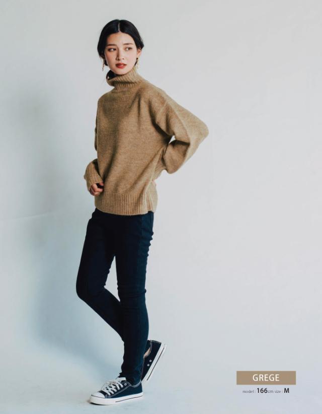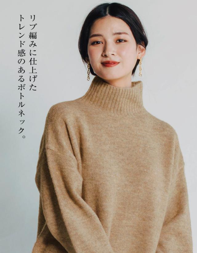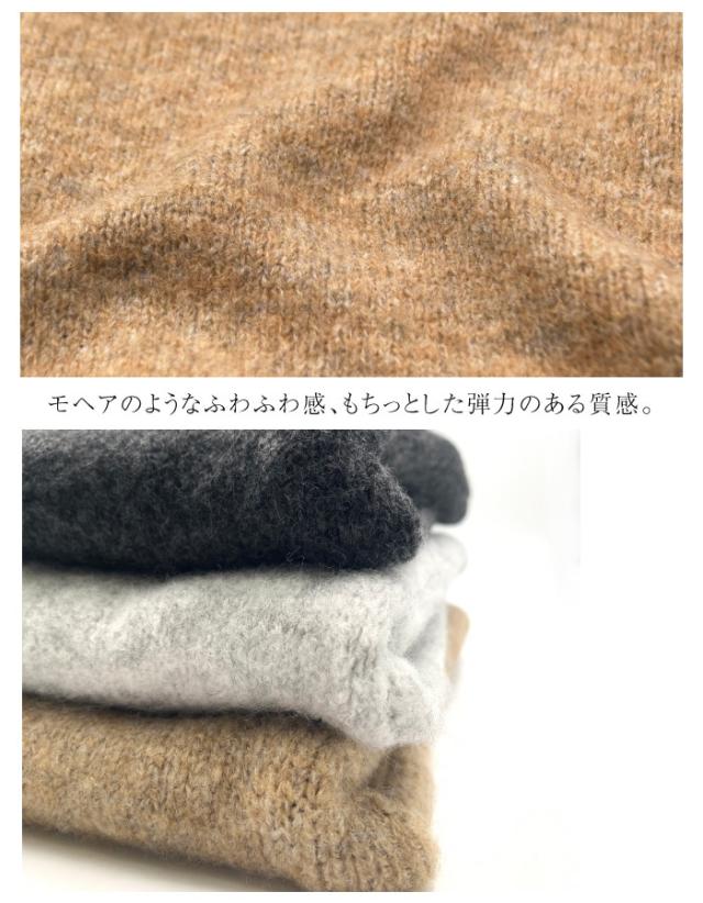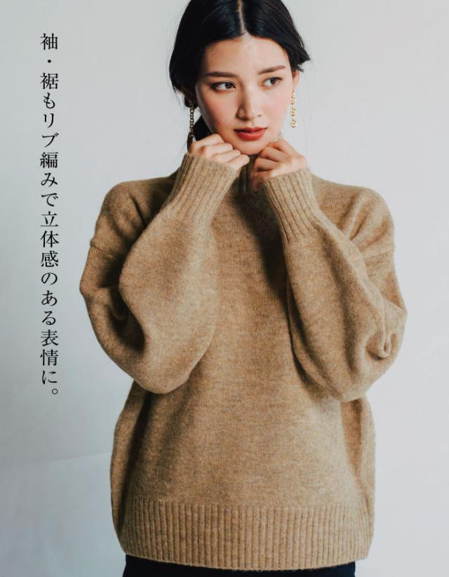モヘアのようなふわふわの質感でチクチクせず快適な着心地。 ハイネック部分や袖・裾はリブ編みで立体的な表情をプラスしてこなれ感のある印象に。