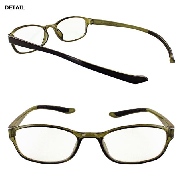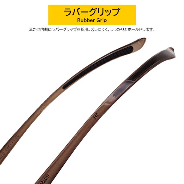 | ●フレームカラー 4951BK/GR ブラック(グレー) 4952BK/RED ブラック(レッド) 4953BR ブラウン(ブラウンデミ) 4954GRN グリーンスモーク(ブラック/グリーン スモーク) ●レンズカラー(全色共通) クリア(くもり止め&ブルーライトカット) | ●素材 フレーム: ポリカーボネート テンプル:TR90 レンズ:プラスチック(非球面レンズ) ●機能 くもり止めコートレンズ ブルーライトカット ラバーグリップ(耳掛け部分内側) |