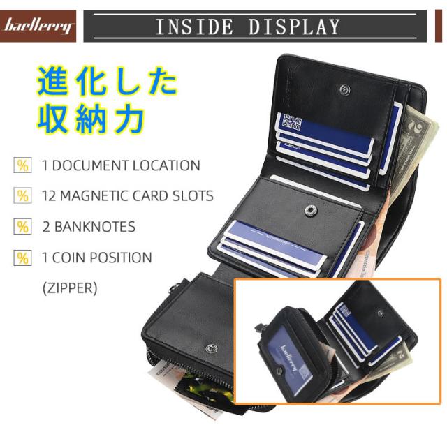 二つ折り財布 プレゼント ギフト サイフ ウォレット PUレザー 紳士用財布 メンズ財布 男性 レザー 彼氏 夫 父 お父さん 財布 レザー 革財布 父の日 ウォレット 記念日 誕生日 Baellerry 財布