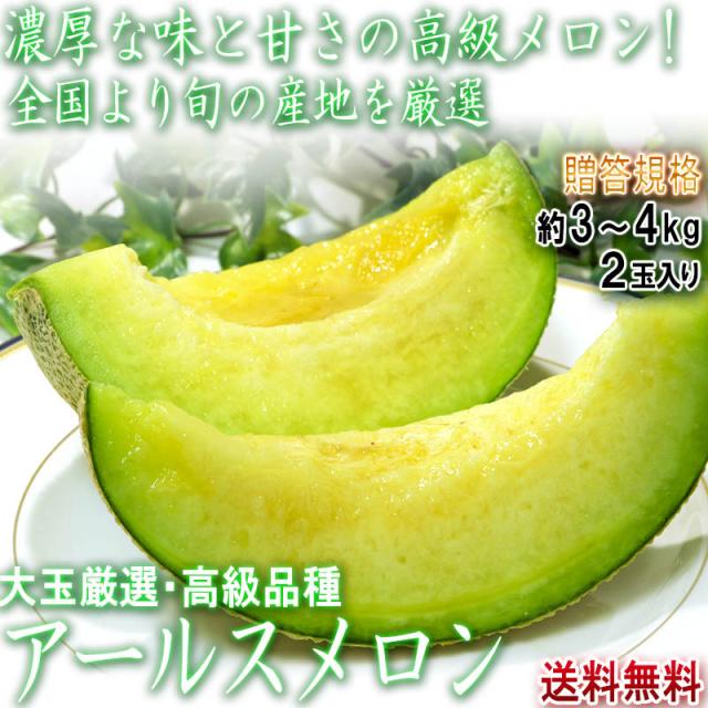 アールスメロン 約3〜4kg 2玉入り 静岡・茨城・高知県産中心 贈答規格 別名マスクメロン! 青肉 日本を代表する高級フルーツ