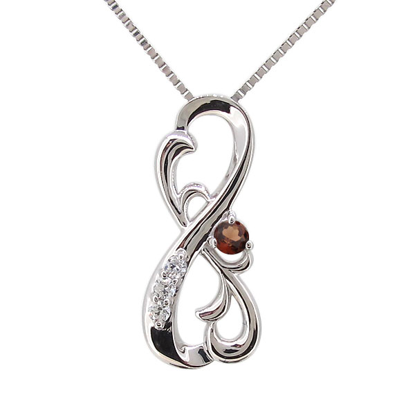 1月誕生石ガーネットを使用したシルバー製の、インフィニティモチーフのレディースネックレス(ペンダント)です。