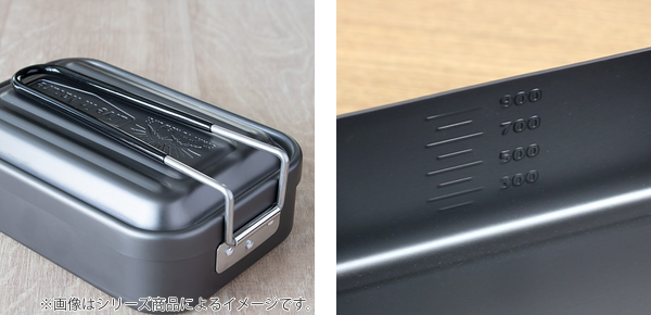 | 材質 | 本体・フタ:アルミニウム合金(板厚1mm) 止め具・ハンドル:ステンレス ハンドルカバー:PVC 表面加工:アルマイト加工 |