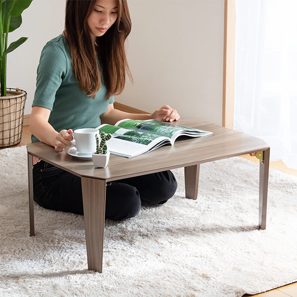 幅75cmの折りたたみテーブルです。使いたい時にサッと広げて使うことができます。使い勝手の良いサイズで、一人暮らしや子供部屋など家具でスペースを取りたくない方、和室用や来客時のサブテーブルとして使うこともできます。