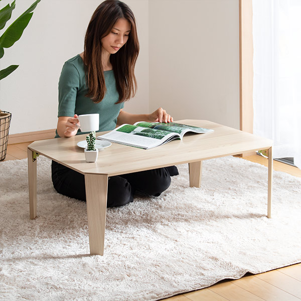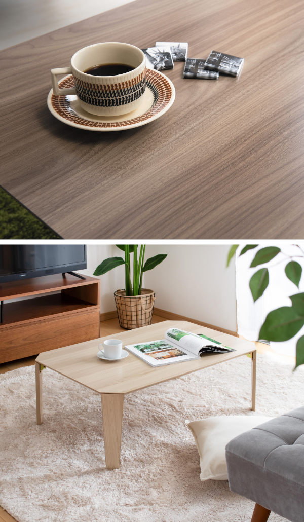 幅90cmの折りたたみテーブルです。使いたい時にサッと広げて使うことができます。使い勝手の良いサイズで、一人暮らしや子供部屋など家具でスペースを取りたくない方、和室用や来客時のサブテーブルとして使うこともできます。