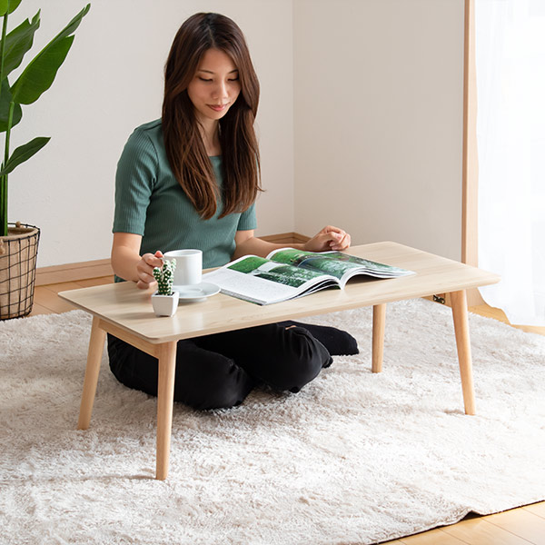 幅90cmの折りたたみテーブルです。使いたい時にサッと広げて使うことができます。使い勝手の良いサイズで、一人暮らしや子供部屋など家具でスペースを取りたくない方、和室用や来客時のサブテーブルとして使うこともできます。
