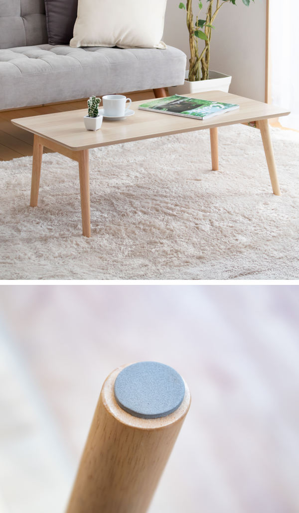 脚は円柱で柔らかく優しい印象に。脚裏は床を傷つけにくいようフェルトも付いています。