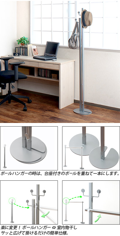 物干し ハンガーラック ハンガーポール&室内物干し 2WAYハンガー 洗濯物干し 物干し竿 コートハンガー ポールハンガー パイプハンガー 折りたたみ アイアン 省スペース家具/スチール /通販/送料無料 シンプル【送料込み】 新生活