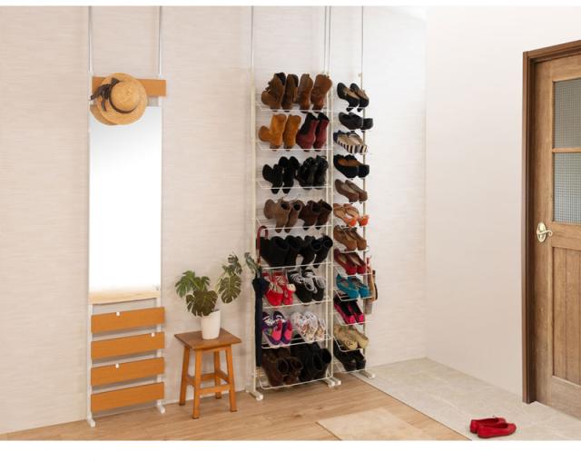 シューズラック 天井つっぱり 靴 スニーカー 収納