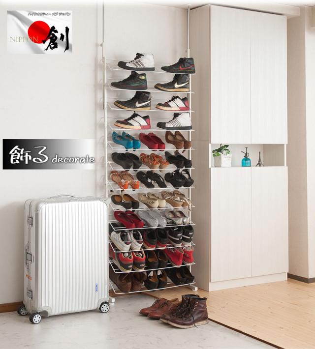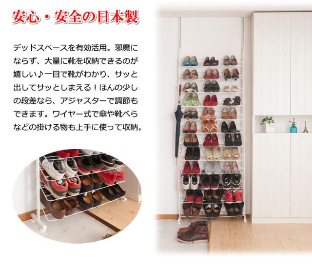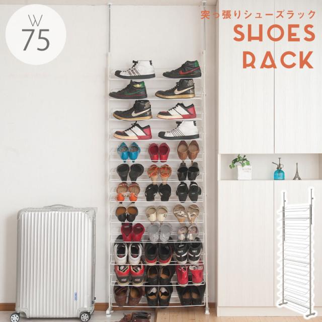 シューズラック スリム シューズラック 省スペース シューズラック おしゃれ シューズラック 伸縮 シューズラック ホワイト 幅75 日本製 突っ張り つっぱり 36足 白 ホワイト ブーツ ワンルーム 一人暮らし 新生活 単身赴任 賃貸 原状回復 薄型 スリム コンパクト シュークローゼット 壁面 突っ張り式 靴箱 シューズボックス ハイヒール シューズインクローゼット シューズインクローク シューズクローク ウォークインシューズクローク シューズ・イン・クローク