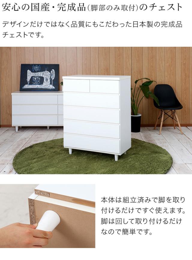 チェスト 洋服タンス ホワイト ほぼ完成品 日本製 約幅80cm ホワイト タンス 北欧 おしゃれ 脚付き リビングチェスト タンス 引き出し引出し たんす 整理 木製 おしゃれ 収納 北欧 木製 送料無料 組立不要