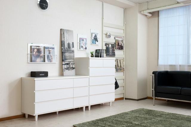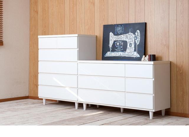 ■商品について/直線的なデザインに円錐型の木製脚がマッチしたホワイトチェスト。収納力とデザイン性のバランスを考えた有能チェスト。