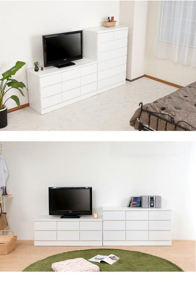 低めの設計で寝室やリビングでのTV台としても、ランドリーで着替えや下着収納としても大活躍。真っ白のチェストは圧迫感なくそれでいて存在感のあるチェストです。