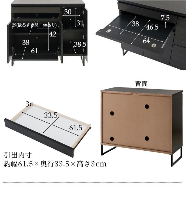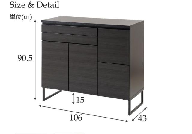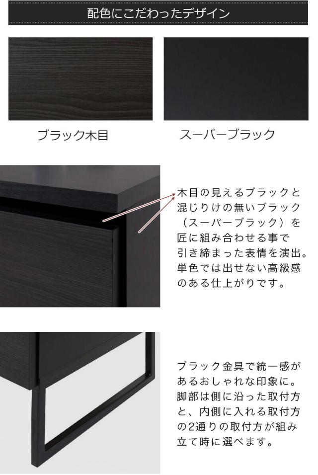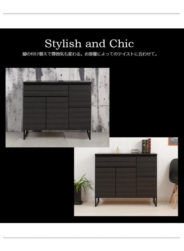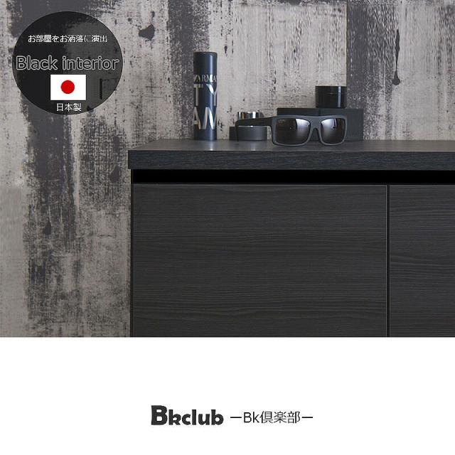 オールブラックで仕上げた高級感のあるキャビネットシリーズです。細脚からスタイリッシュに洗練されたフォルムは直線的で黒木目とマッチ。黒木目でキメるモダンインテリア。引出しはスライドレール付き。