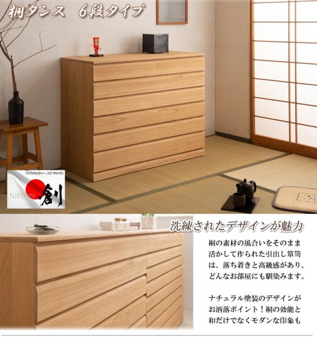 桐洋風チェスト 幅100.5cm 桐箪笥 6段タイプ 隠しキャスター付き ナチュラル 桐引出し 桐袖出したんす 総桐箪笥 桐チェスト 桐収納 着物収納 桐箱 桐盆 モダン 和風 リビング チェスト 組立不要